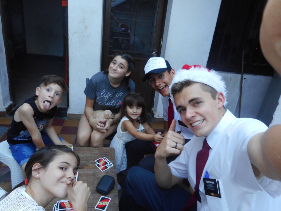 Later, we ate lunch with Elder Smith and Elder Romo. Elder Smith gave me a Christmas present, a tie, which was sick haha I love that kid. We then went and called home, which was awesome, I love my family, and then finished the night playing Uno with Maria Paz and her family.
