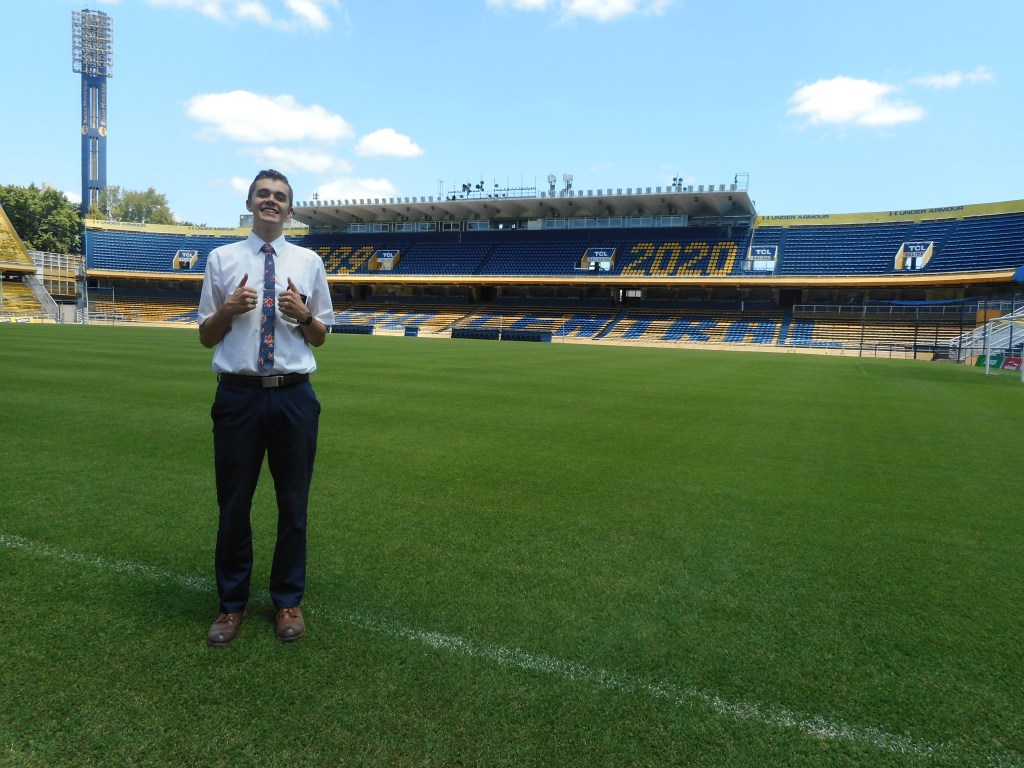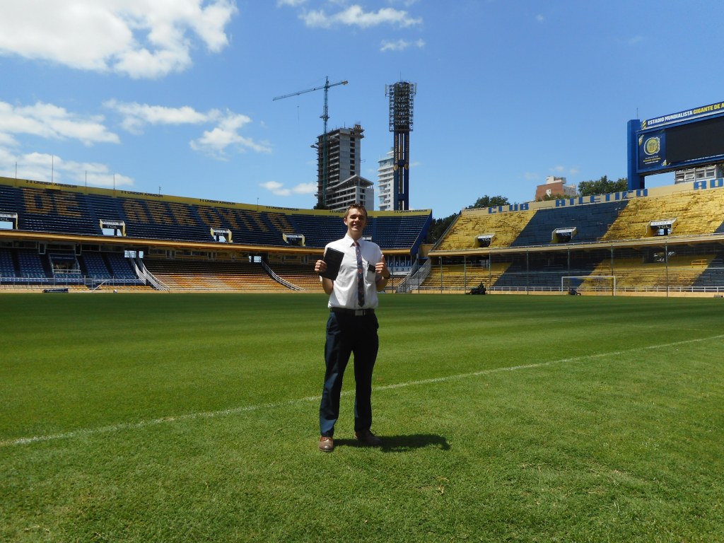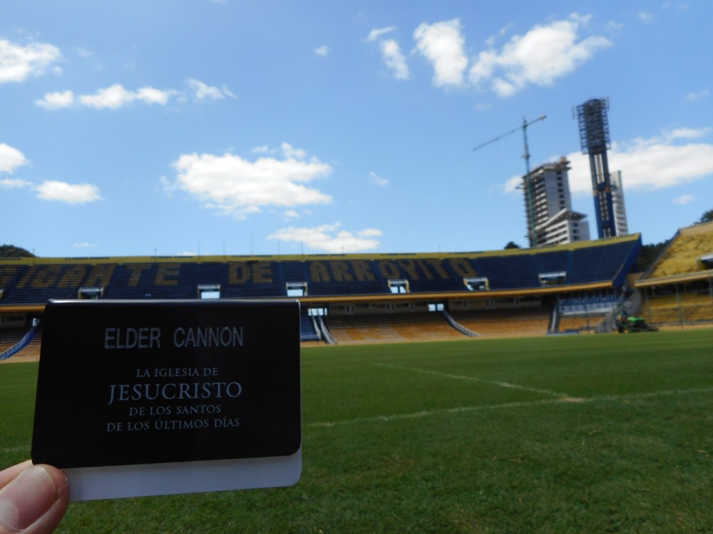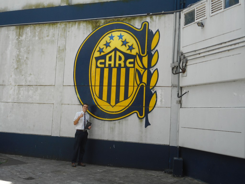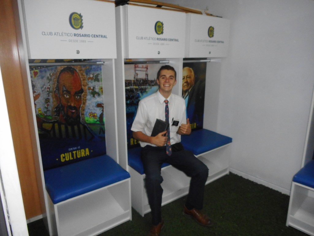 Today, we went and saw the Rosario Central (one of the two biggest teams here in Rosario) stadium! It was awesome. They showed us the locker room, the warm up turf, and we got to go on the field. We also went to a mall, and that was so weird. I hadn’t been in a place like that in over a year haha, I felt in another world. I saw a parking garage, a river, a boat, and lots of things I hadn’t seen in a lot of time. It was a party. We went with our Zone Leaders, Elder Arroyo from Guatemala and Elder Betancourt from Venezuela.